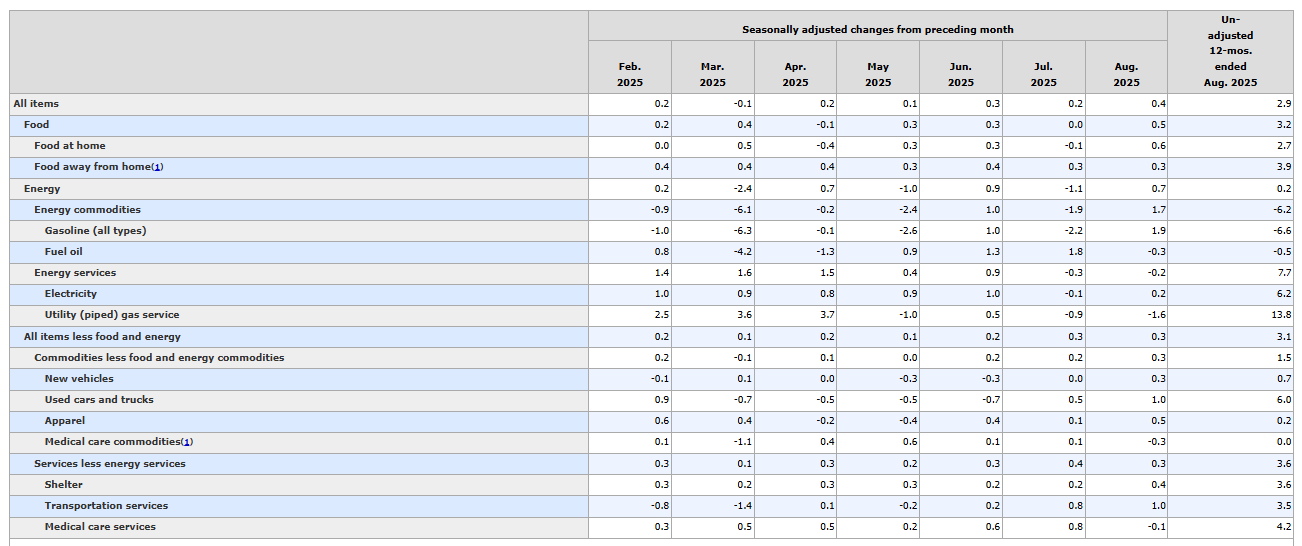 Bureau of Labor Statistics Data Source: Inflation rose 0.4% in August 2025 and 2.9% over the year